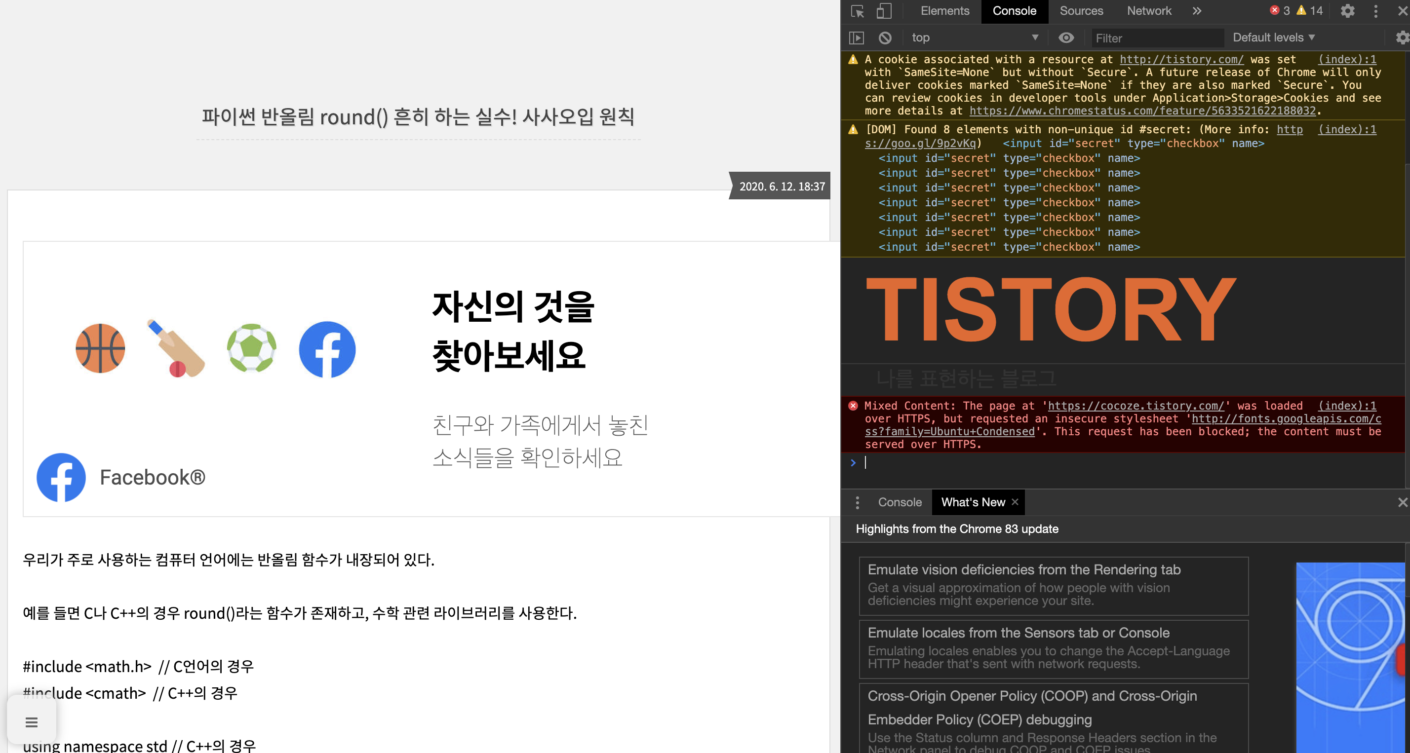 이렇게 문법적 오류도 잡아주고, 여기서 console.log로 확인도 가능하다.